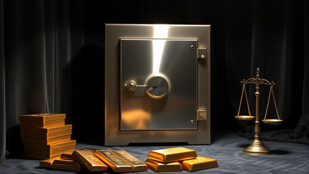 Transporting gold to international depositories is like sending a treasure chest on an adventure across the seas. Typically, secure, insured shipping companies handle the logistics, ensuring your gold travels safely. They use armored vehicles for ground transport and specialized carriers for air freight. Along the way, customs and legal regulations are meticulously followed, minimizing risks. Once it reaches its destination, the gold is carefully stored in high-security vaults, ready for your investment journey.