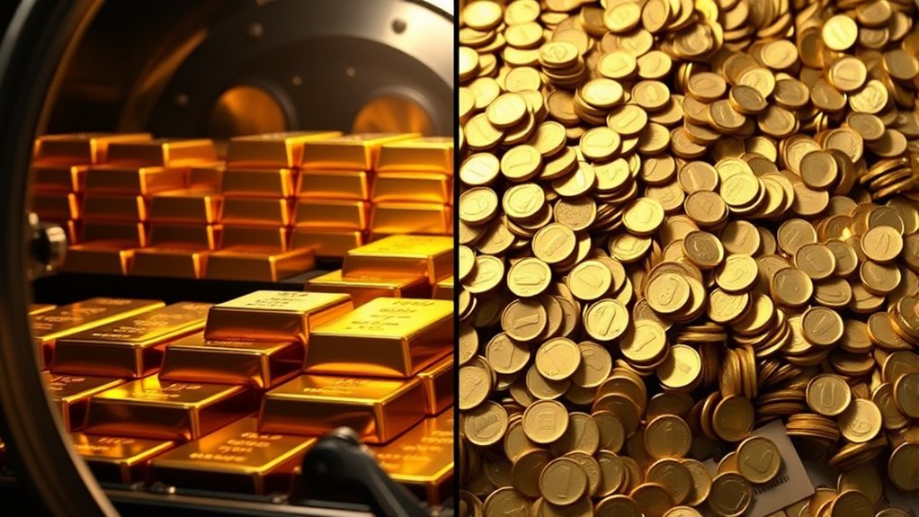 Understanding the differences between segregated and commingled storage sets the stage for evaluating their security and risk implications. With segregated storage, your gold is securely stored separately, minimizing the risk of claims from others. This method provides peace of mind, knowing your assets are protected. On the other hand, commingled storage pools your investment with others, which can introduce theoretical risks if the depository encounters financial issues. Although reputable custodians implement tracking and insurance, the lack of individual identification can be concerning. Ultimately, if you prioritize asset protection and accountability, you may lean towards segregated storage. Alternatively, if you’re more cost-conscious and comfortable with shared assets, commingled storage might suit you better. Additionally, understanding the importance of insurance coverage can further enhance your decision-making process regarding storage options.