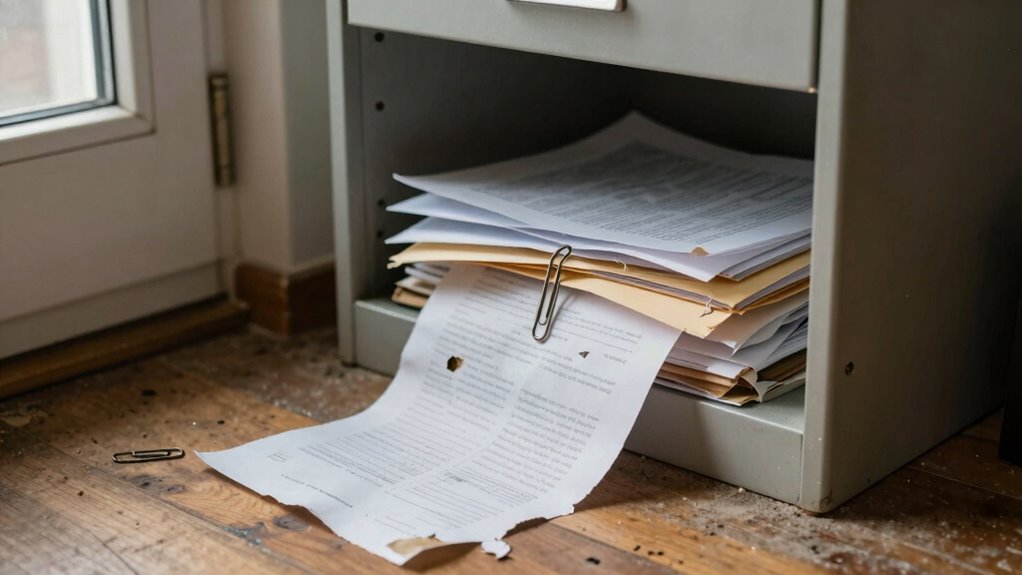 You should review and reorganize your paperwork at least once a year to prevent clutter and decay. While some believe in filing system myths like “set it and forget it,” regular check-ins keep your documents safe and accessible. Remember, paper storage humor aside, neglect can damage files faster than fire. Staying proactive guarantees your papers stay in good shape, avoiding the home record storage mistake that can ruin important documents.