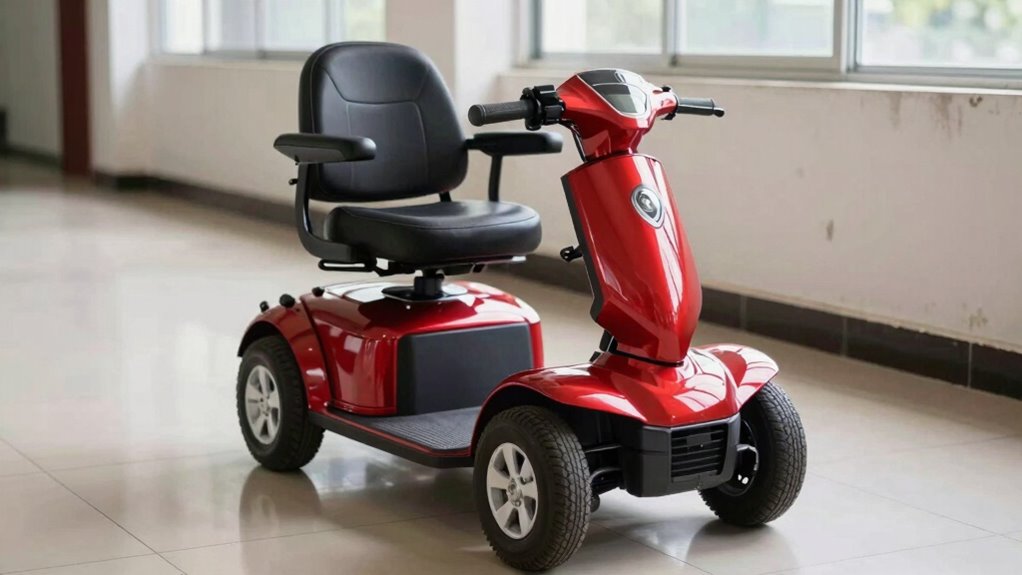 An adjustable seat considerably enhances comfort and usability, especially in tight spaces where ease of access is essential. I look for a seat with a height range between 27.5 and 32.6 inches to ensure a comfortable fit, no matter my height. A swiveling seat design makes getting on and off easier, which is especially helpful in crowded areas. Padded, supportive seats help reduce back pain and make long rides more comfortable. I also appreciate the ability to adjust the backrest and seat tilt for better ergonomic support. Quick and simple adjustments, like levers or knobs, are a must, so I can customize my seating position without hassle or tools. Comfort is key for extended use and steering through tight spaces confidently.