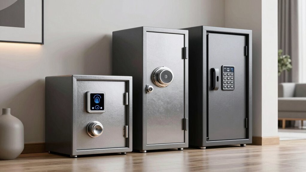 If you’re searching for the 15 best anti-theft safes for apartment dwellers in 2026, I’ve found a great range that balances security, fire and water resistance, and ease of use. These safes feature sturdy steel construction, tamper-resistant locks, and mounting options to prevent theft. Many include digital or biometric locks for quick access, and some are waterproof and fireproof, perfect for protecting valuables in emergencies. Keep exploring for detailed insights on top models to find the perfect fit for your needs.