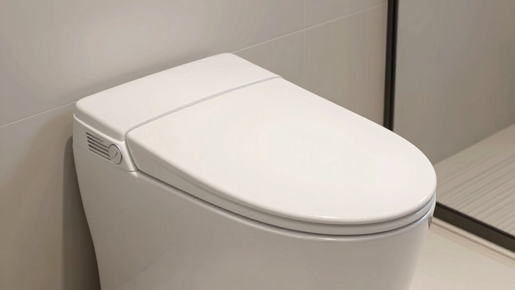 Selecting a bidet seat with heated options means paying close attention to how customizable the temperature settings are. I look for models that offer multiple temperature levels for both the seat and dryer, so I can find my perfect comfort zone. Independent controls for each allow me to adjust the seat and air warmth separately, tailoring the experience to my preferences. Quick heat-up technology is a plus, ensuring warm water and air are ready within seconds. I also value memory functions that save my preferred settings for future use, maintaining consistency. Easy-to-use interfaces, like remote controls or side panels, make adjustments seamless. These features help create a personalized, comfortable experience every time I sit down.