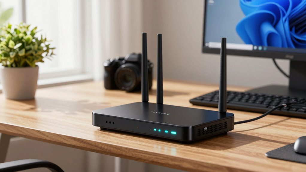 To troubleshoot connectivity issues with your cable modem router combo, I start by restarting the device. I check all cables for secure connections and guarantee my firmware is up to date. I also run a speed test to identify potential problems. If issues persist, I reset the device to factory settings or contact my ISP for assistance. These steps usually help me restore a stable internet connection quickly.