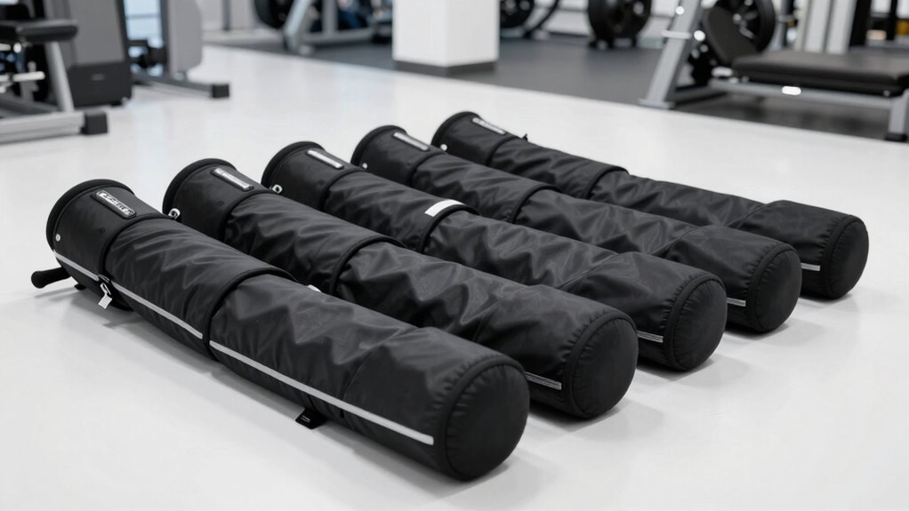 Portability and ease of use are essential factors when choosing compression boots, especially if I want to incorporate recovery into my busy schedule or travel frequently. Lightweight, cordless designs let me use them anywhere without needing outlets, making recovery seamless. The compact size and included travel bags make transporting them simple, whether I’m heading to the gym or on the road. User-friendly controls and quick setup features mean I can get started fast, even if I have limited mobility. With rechargeable batteries, I enjoy flexibility for outdoor sessions or travel without sacrificing performance. Foldable or adjustable fittings ensure a comfortable, secure fit across different leg sizes, making donning and removing the boots effortless. Overall, these features help me stay consistent with my recovery routine, no matter where I am.