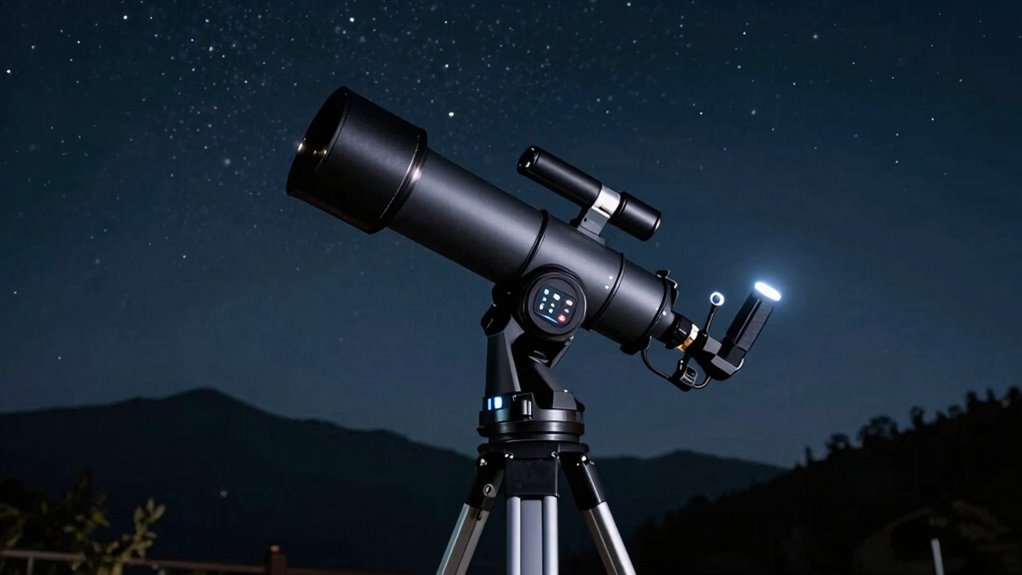 Automated mount features are essential for making astrophotography and celestial observation more accessible and enjoyable. With tools like SkyAlign or SkySpot, I can quickly and accurately align my telescope by centering just three bright objects or recognizing star patterns. Built-in motors and software ensure precise tracking and slewing, reducing manual adjustments and boosting efficiency. Compatibility with accessories like GPS modules or WiFi adapters can improve positional accuracy and allow wireless control, making setup smoother. Advanced computerized mounts often include extensive celestial databases, enabling the telescope to automatically locate and track thousands of objects with minimal input. These automation features streamline the process, making it easier for adults to facilitate the transition from manual to computerized telescopes and spend more time exploring the night sky.