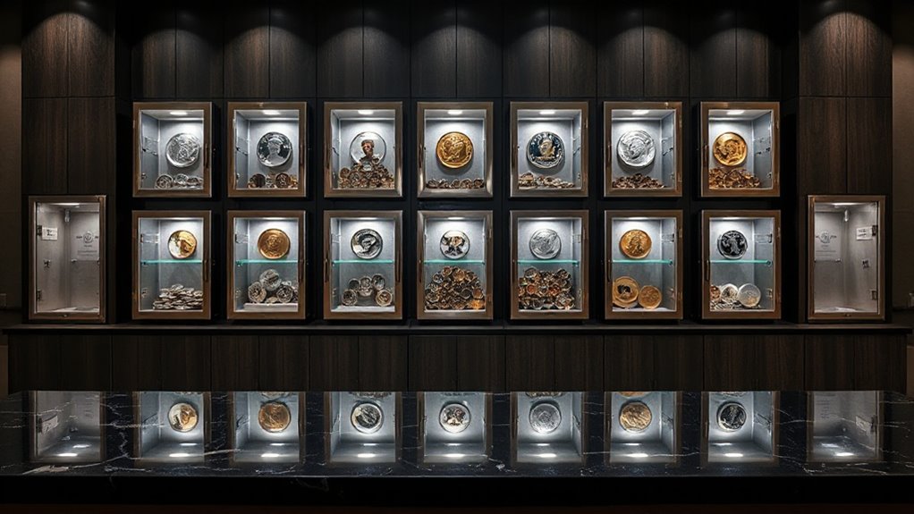 Did you know that over 60% of coin collectors have experienced damage or theft without proper display safes? Protecting your collection is essential, and choosing the right display safe can make all the difference. Whether you prefer wooden cases, acrylic holders, or lockable book holders, investing in a quality display safe guarantees your treasures stay secure and pristine. Don’t wait—secure your collection today and preserve its value for years to come.
