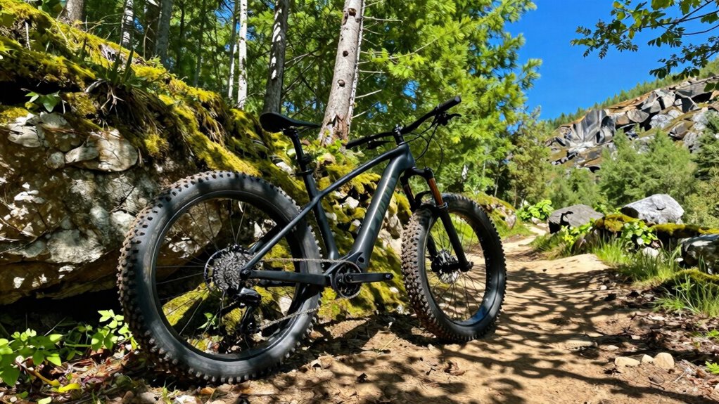 When selecting a fat tire electric bike for all-terrain adventures, tire durability and size play a crucial role in overall performance. Fat tires usually measure 4 inches or wider, offering better stability and traction on diverse surfaces. Larger diameters improve shock absorption, making rides smoother over rough terrain. Durability hinges on the rubber compound and puncture resistance, which are vital for off-road use. Wider tires distribute weight more evenly, reducing pressure points and lowering the risk of flats on uneven ground. It’s also essential to choose a tire size compatible with your bike’s frame and suspension to guarantee peak performance. By paying attention to these factors, you’ll enjoy a safer, more comfortable, and more reliable all-terrain riding experience.