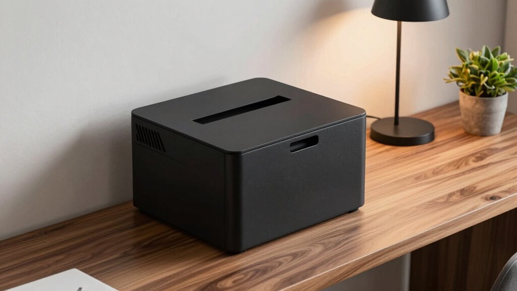 Selecting the right design and style for your home office shredder cabinet can substantially enhance your workspace’s look and feel. There are plenty of options, from modern and minimalist to farmhouse and rustic styles, allowing you to match your existing decor effortlessly. Materials like engineered wood, MDF, or metal frames influence both appearance and durability, giving you flexibility based on your needs. Color choices such as black, white, brown, or custom finishes help the cabinet blend seamlessly with your furniture. Additionally, design features like lockable doors, open shelving, and integrated charging stations boost functionality while adding visual appeal. Picking a style that complements your space makes your home office both functional and visually cohesive, creating an environment that’s inviting and efficient.