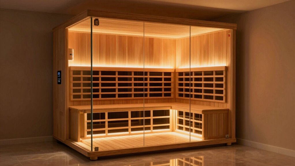 Think of my infrared sauna like a smart thermostat—designed to heat efficiently with minimal waste. Yes, they’re quite energy-efficient for daily use, especially models with adjustable settings that let me customize sessions. I’ve noticed my monthly electricity bills stay reasonable, and the sauna warms up quickly, conserving energy. Overall, they’re a smart investment, blending wellness with savings, much like a reliable, low-maintenance friend.