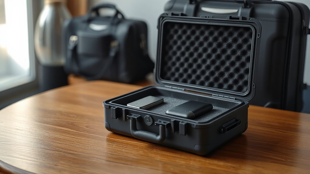 The locking mechanism on a portable lockbox plays a critical role in safeguarding my crypto devices during travel, so I carefully weigh the options available. Digital keypad locks offer quick access and customizable passcodes, but they rely on batteries and could be vulnerable to hacking if not properly secured. Combination locks use rotating dials, don’t require power, and are low-maintenance, though they might be slower to open and easier to guess. Key locks provide a traditional approach, but there’s a risk of losing keys or theft, and carrying multiple keys can be inconvenient. When choosing, I consider ease of use, security level, and reliability—since a dependable lock mechanism is essential for protecting my sensitive devices during journeys.