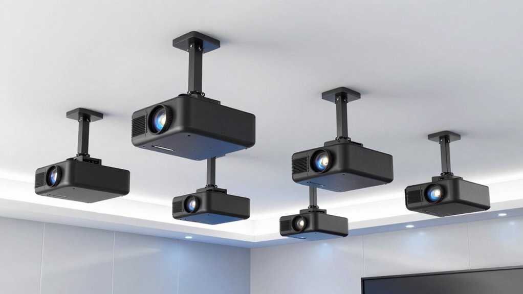 Price and warranty are key factors to contemplate when selecting a heavy-duty projector ceiling mount. Prices typically range from $30 to $150, depending on features and build quality. While cheaper options may seem appealing, investing in a higher-quality mount often means better durability and support. Most quality mounts come with warranties spanning 1 to 5 years, offering protection against defects and durability issues. Some brands even provide lifetime warranties, ensuring long-term support and replacement coverage for mechanical or structural failures. It’s important to read warranty terms carefully, especially regarding proper installation and adherence to weight limits. Comparing warranty coverage and customer service reputation can help you choose a mount that not only fits your budget but also provides reliable support over time.