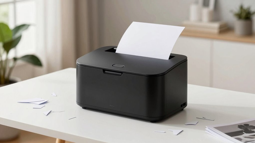 I’ve found that these shredders handle various paper types and thicknesses quite well. They smoothly shred standard sheets, including slightly thicker paper like cardstock, without jamming. However, extremely thick or stapled documents might slow them down or cause jams. I recommend checking the shredder’s specifications for maximum sheet capacity and thickness to guarantee smooth operation with your specific paper types.