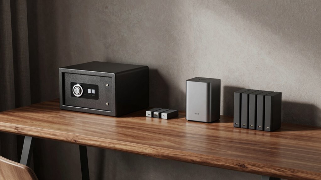 Think of these safes as your personal treasure chests, guarding your most valuable documents from life’s storms. Choosing the right one guarantees your tax return backups are as secure as hidden gold. With options that are fireproof, waterproof, and equipped with alarms, you can rest easy knowing your financial treasures are protected. After all, a good safe is the sturdy fortress your financial future deserves—ready to stand strong when you need it most.