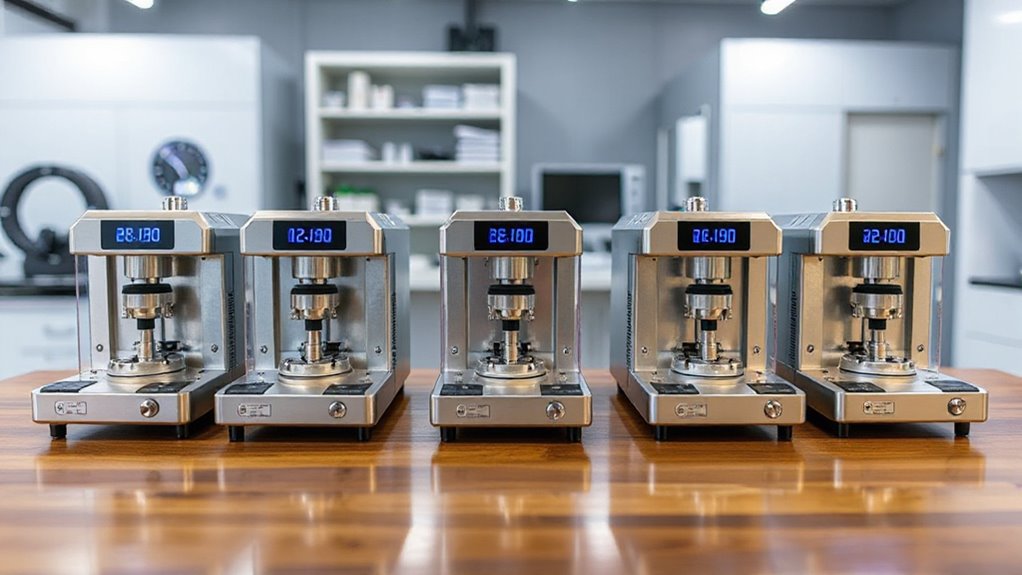 These machines are suitable for both professionals and hobbyists, depending on the model. I find that high-end testers offer precision and durability for professional use, while more affordable options are perfect for hobbyists just starting out. Whichever you choose, make sure it matches your needs and experience level. I recommend testing a few samples first to guarantee you’re comfortable with the machine’s operation and accuracy before relying on it fully.