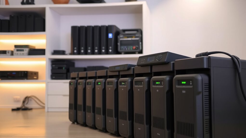 Choosing the right UPS for my home NAS is like finding the perfect safety net—it keeps everything secure and running smoothly. With these top options, you can confidently protect your data and devices from power interruptions. Remember to contemplate capacity, features, and budget. Just like a reliable friend, a good UPS stands by your side when you need it most, ensuring your system stays alive no matter what surprises come your way.