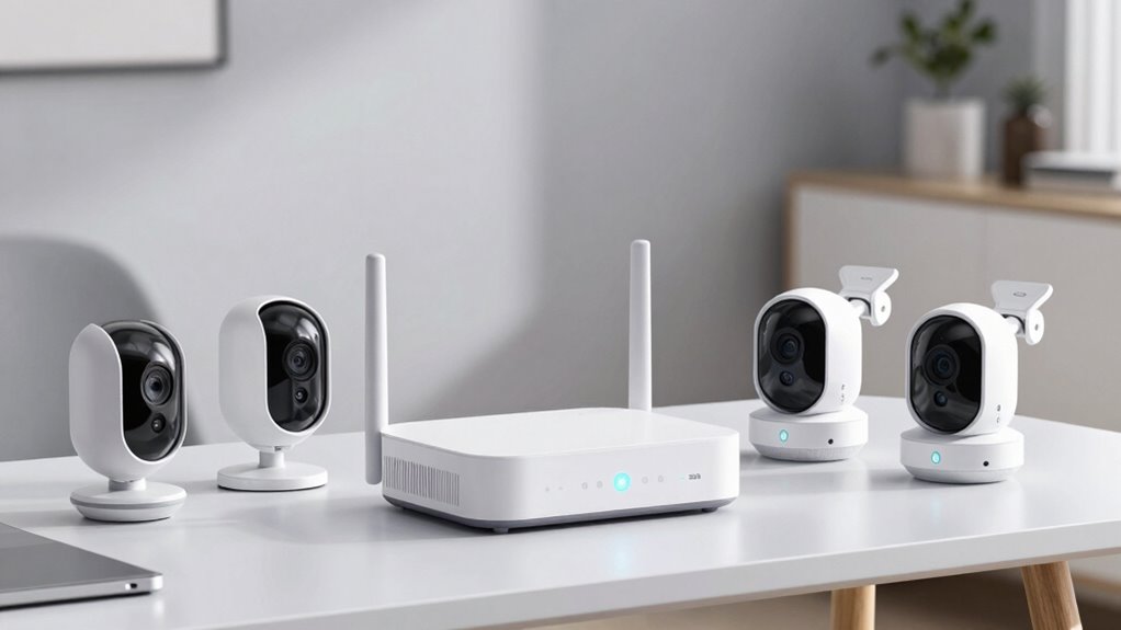 Easy installation and setup are key factors to contemplate when choosing a wireless security camera system with a base station. I recommend selecting a system with a plug-and-play design, featuring pre-paired cameras and straightforward connection methods to save time. Look for options with auto-pairing and quick setup processes that can be completed in five minutes or less. Make sure the system provides clear instructions or app-guided setup to avoid needing professional help. User-friendly camera mounts that require just a few drilled holes and minimal wiring simplify placement indoors or outdoors. Additionally, opt for systems with minimal hardware requirements, such as wireless connectivity and integrated power solutions, to ensure a smooth, hassle-free installation experience.